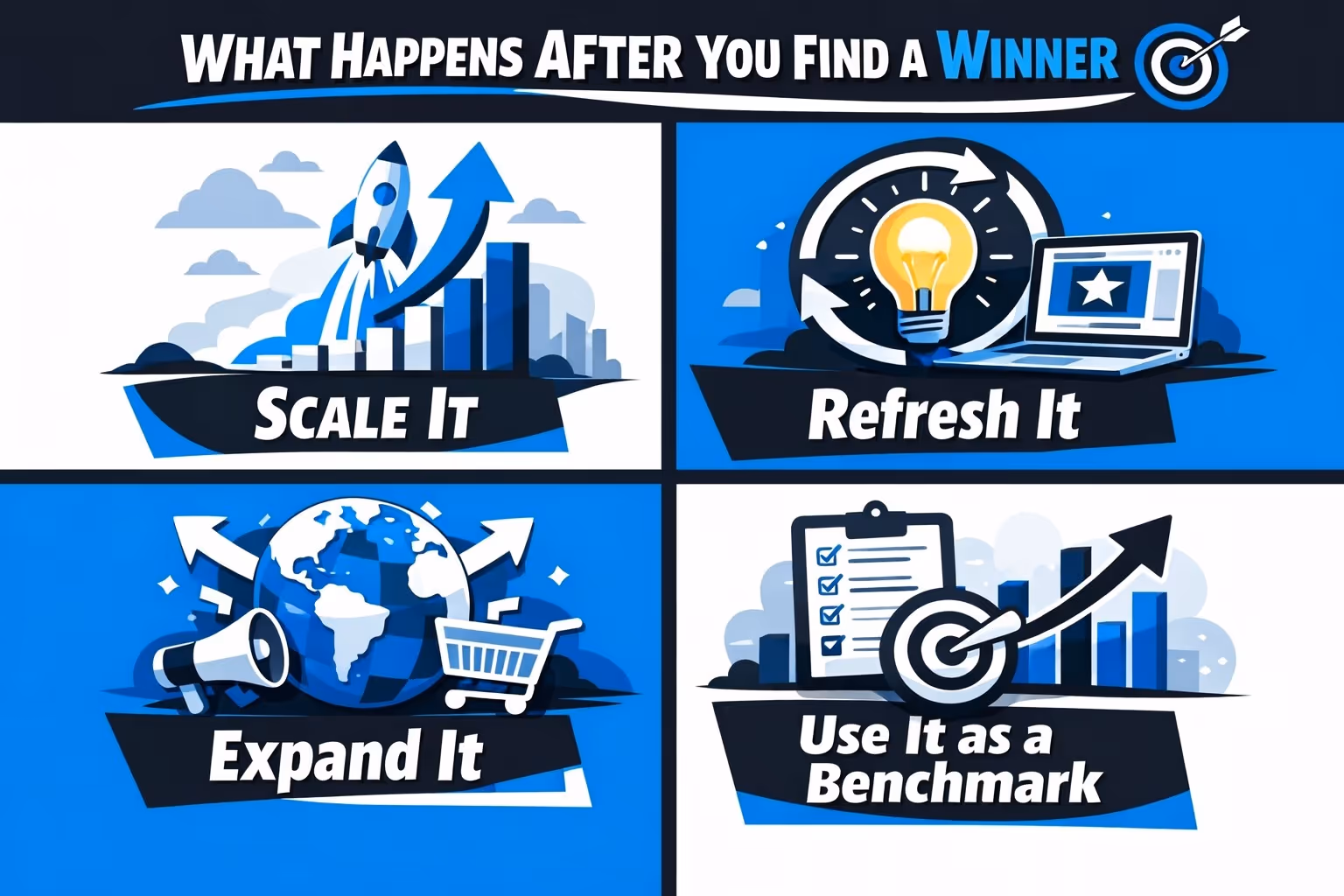 The goal is simple: figure out which version performs better based on a clear metric like cost per purchase, click-through rate, or return on ad spend (ROAS). But the goal behind the goal is even more important: build a repeatable process for scaling winners and cutting waste fast.