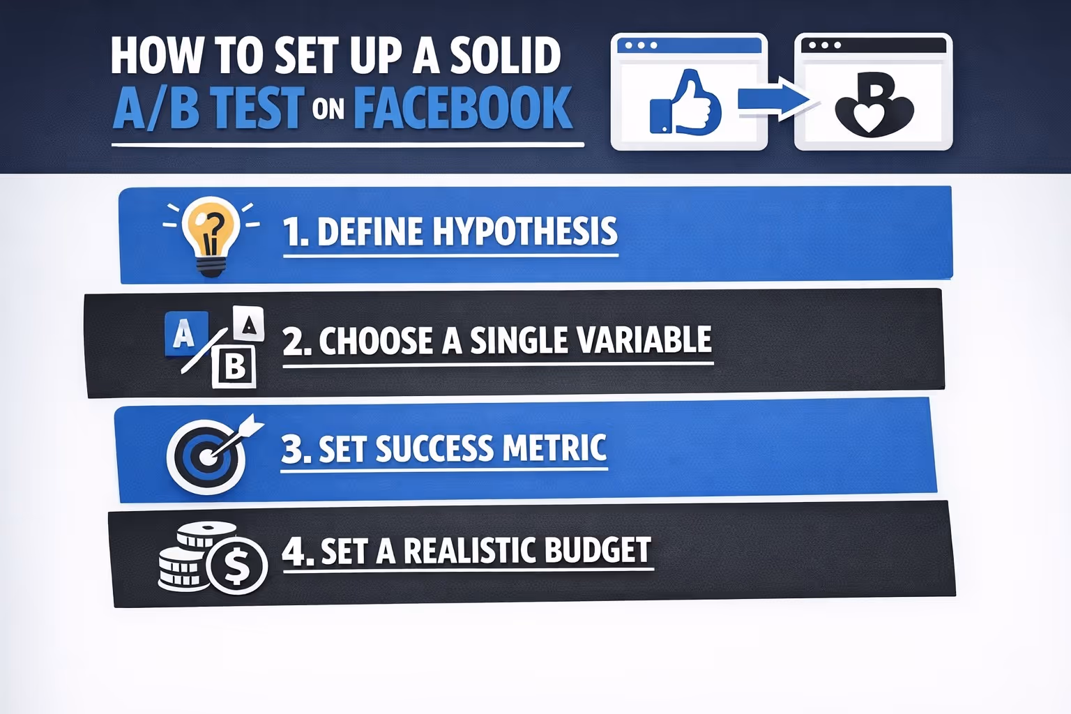 A/B testing Facebook ads isn’t about finding the one perfect ad. It’s about building a system that helps you learn, adjust, and improve consistently. Not every test will produce dramatic results. Some will be inconclusive. That’s fine. Keep testing. Keep learning. Over time, you’ll waste less budget, make better decisions, and build a process that works whether you’re spending $50 a day or $5,000.