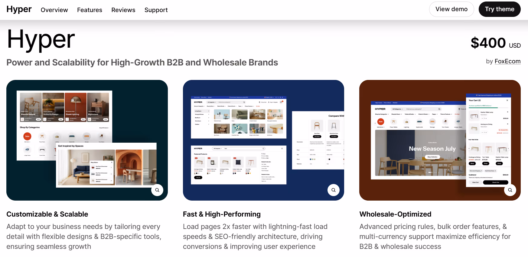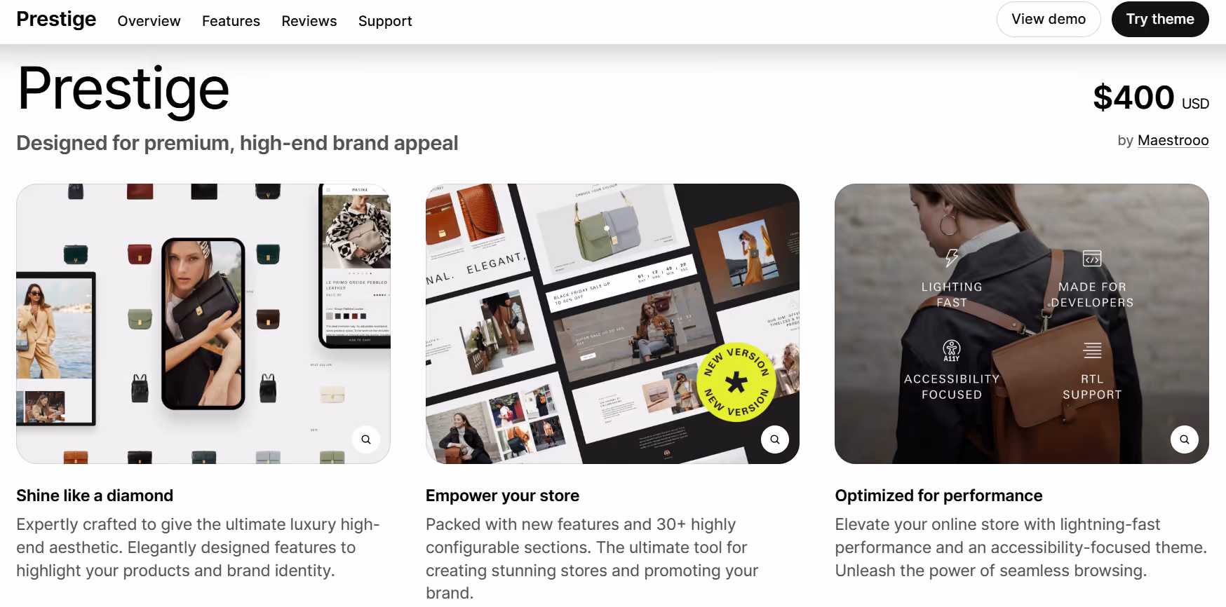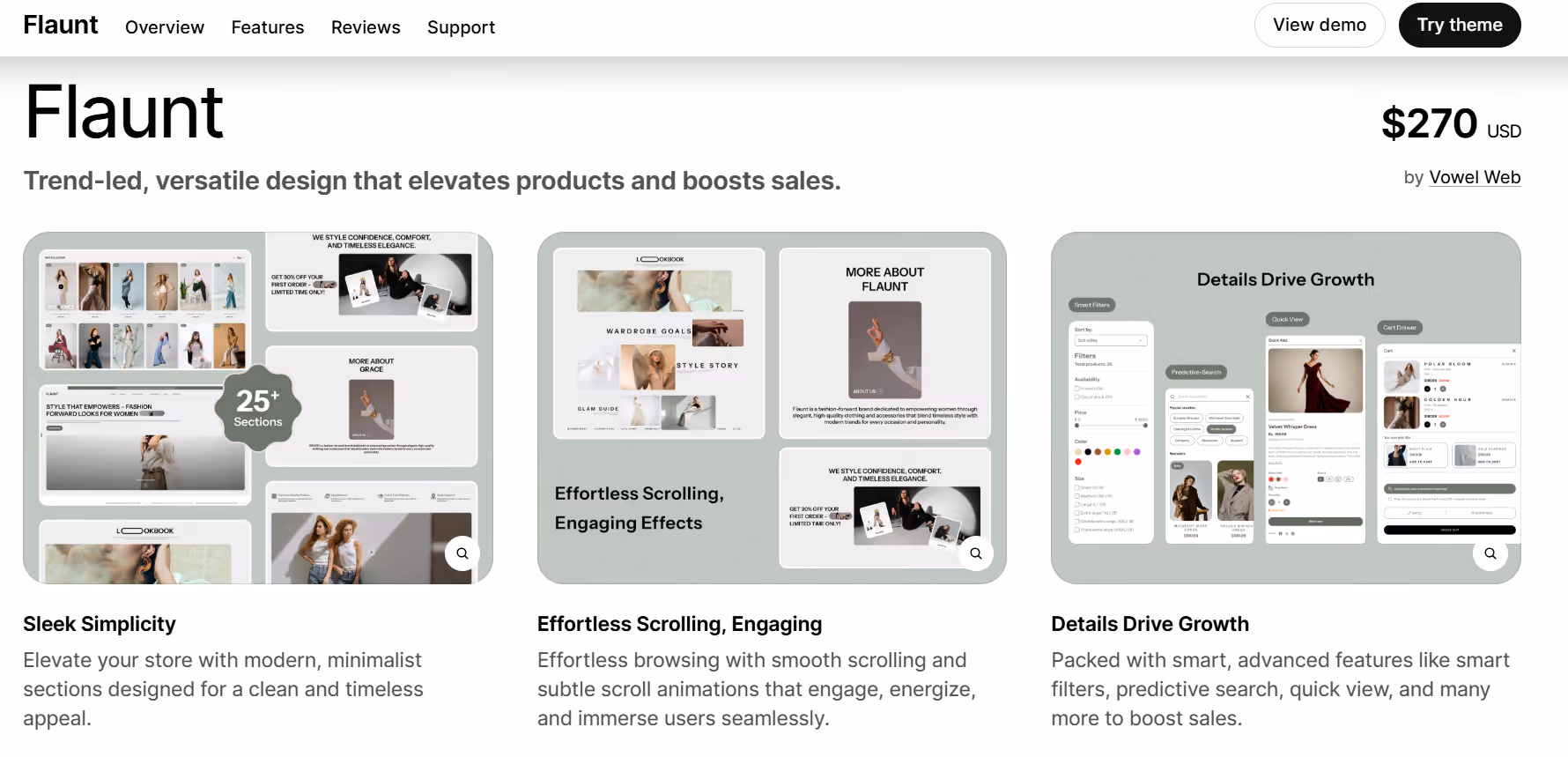 Elegant, polished layout for homepages, product pages, and collections