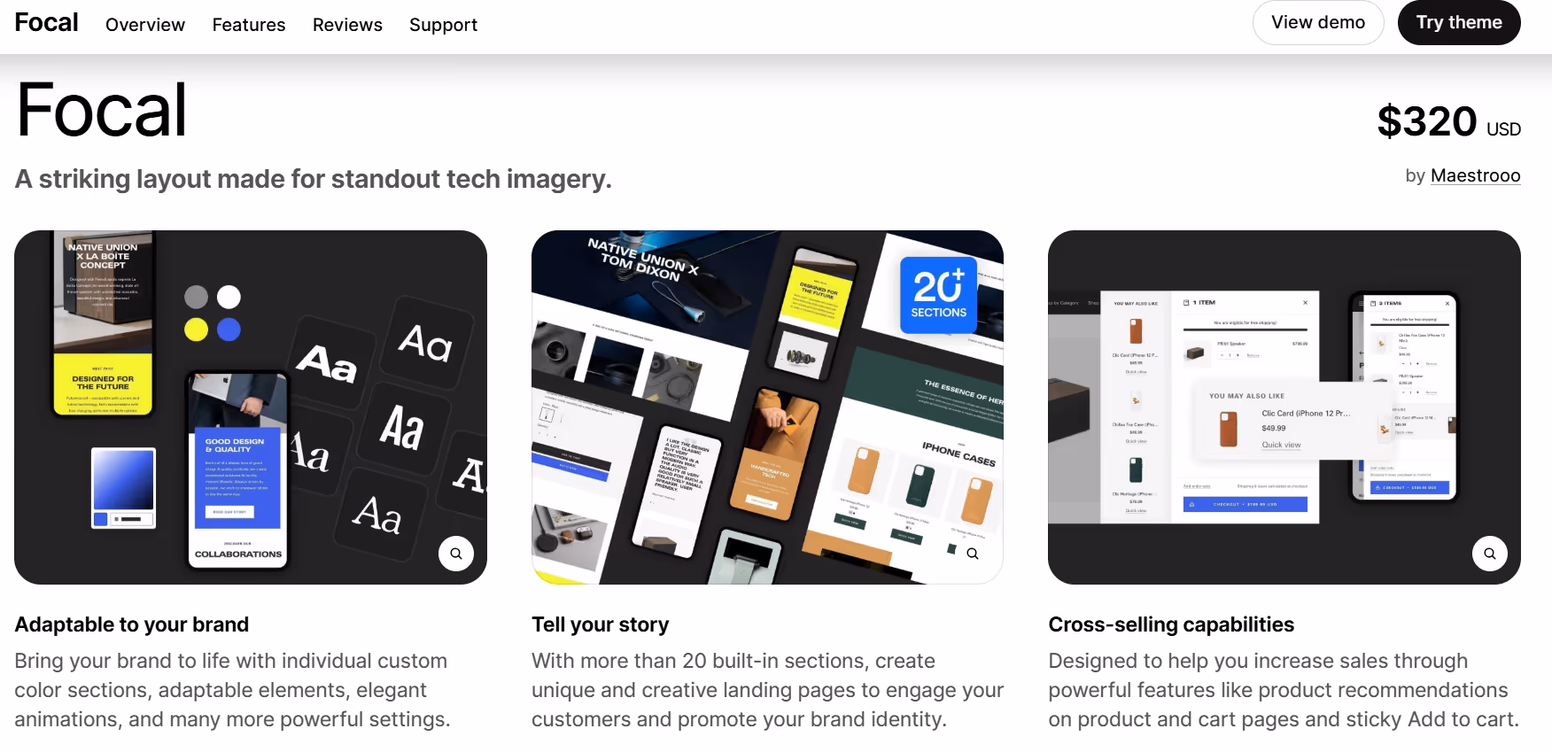 Simple and clear layout for homepages, collections, and product pages