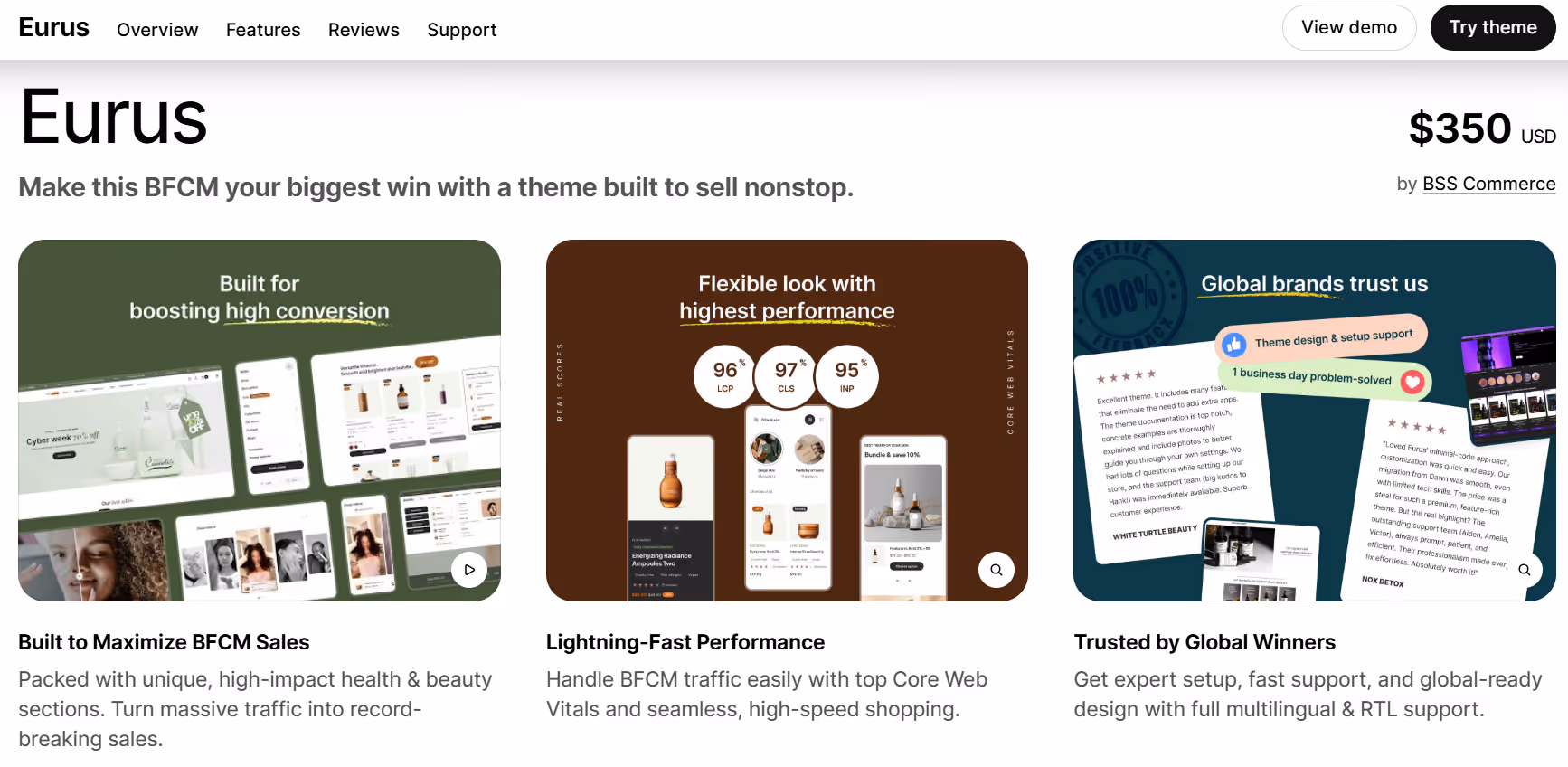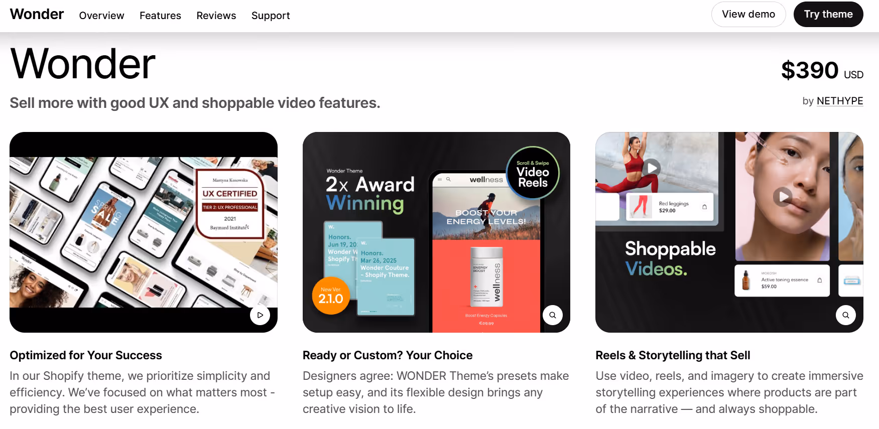 Modern, clean layout for homepages, product pages, and collections