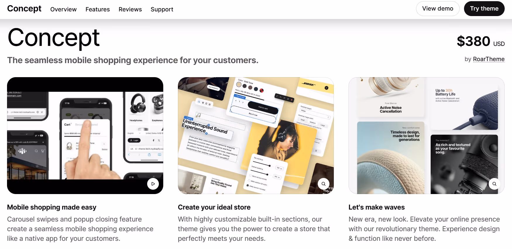 Concept focuses on creating a clean and modern layout that balances visuals with product information. The theme provides customizable sections for homepages, product pages, and collections, allowing merchants to arrange images, text, and featured products in ways that fit the store’s style. The structure is straightforward, helping visitors navigate quickly while keeping the browsing experience organized and consistent.