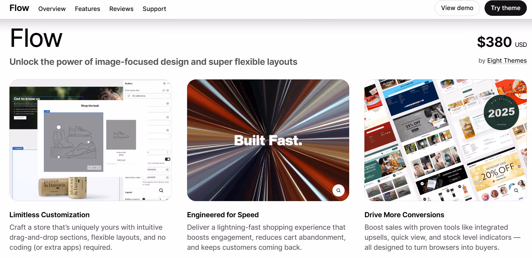 Flexible layouts for homepages, product pages, and collections