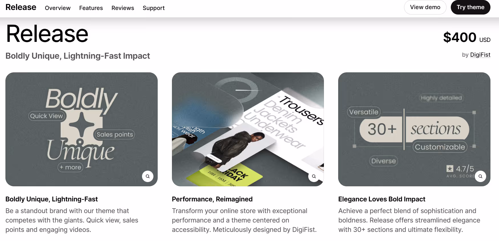 Release also includes features that help streamline the browsing experience. Sections for featured collections, banners, and flexible content blocks allow stores to highlight specific products or campaigns efficiently. The theme is designed to work well across desktop and mobile devices, maintaining readability and smooth navigation. Integration with Shopify’s built-in tools ensures that additional functionality can be added without complicating the setup.