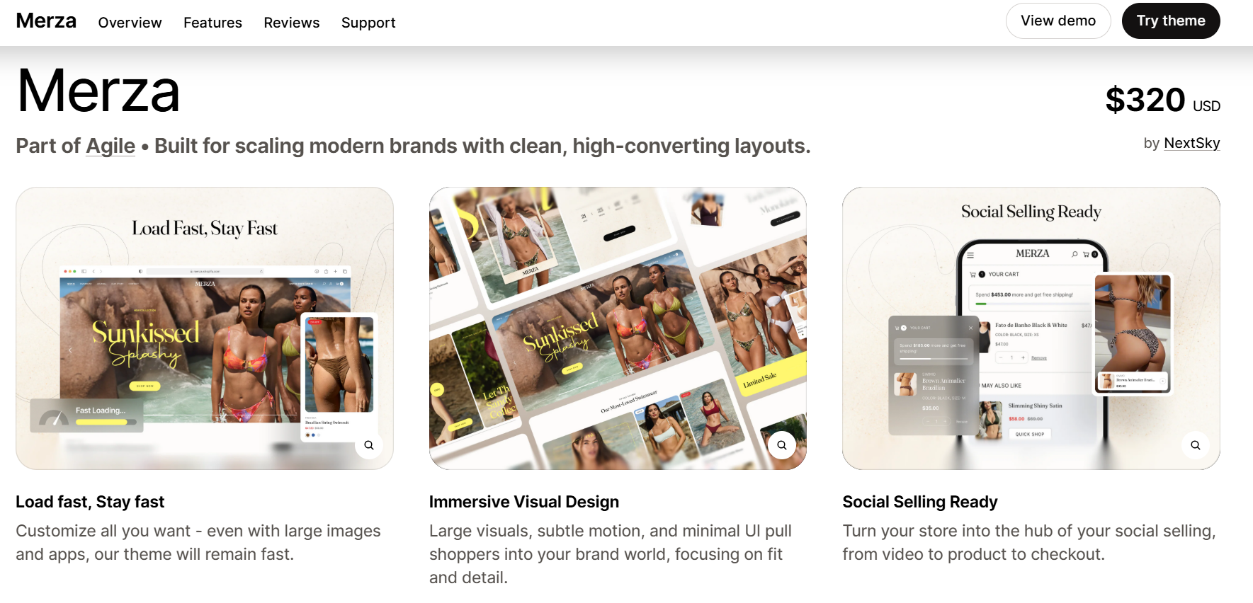 Merza is a Shopify theme preset designed to help clothing stores display products in a clear, organized way while keeping the shopping experience smooth. It typically starts with a simple header and hero image, leading into collections and featured items arranged in neat grids. The layout balances product visibility with ease of navigation, allowing visitors to quickly browse through categories or check out individual products without getting lost in clutter. Agile also makes room for lifestyle images and banners, giving stores a chance to show how products fit into real-world use.