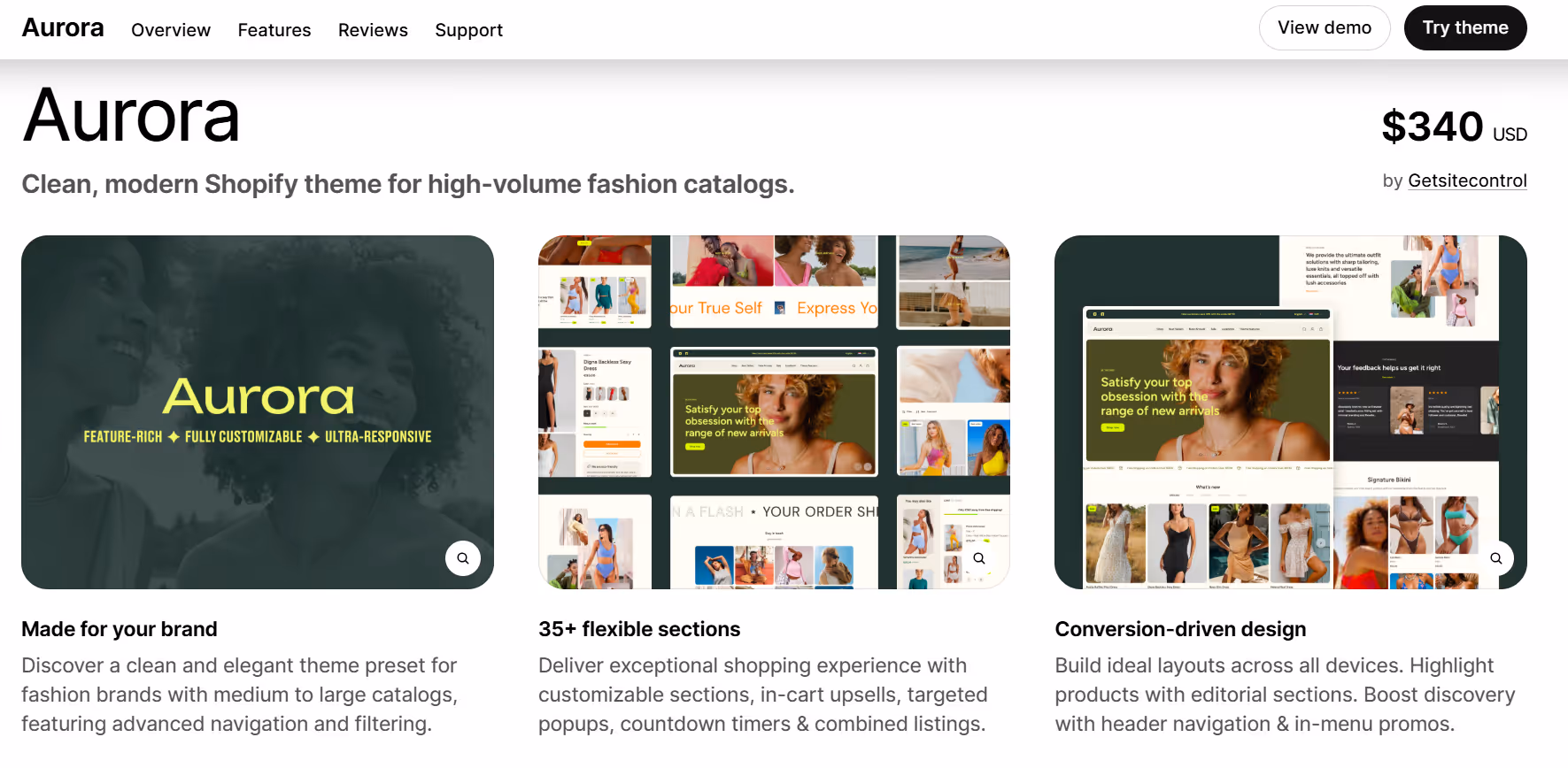 The theme supports flexible sections for banners, featured products, and lookbooks, helping stores highlight various styles or seasonal offerings. Its responsive design ensures a smooth experience across desktop, tablet, and mobile devices. Aurora also includes options for quick product previews, multi-collection displays, and organized menus that help customers find what they’re looking for efficiently.
