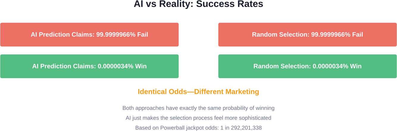 Those rare wins using AI-generated numbers? They happen at the same rate as wins using any selection method. The AI didn't crack a code—someone just got extraordinarily lucky.