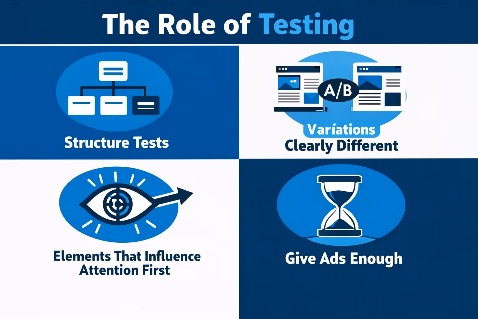 Effective testing is not about throwing many versions into the platform and hoping something sticks. It works best when there is intention behind the variations. That usually means changing one main element at a time, running multiple versions in parallel, and giving ads enough time to collect meaningful data.