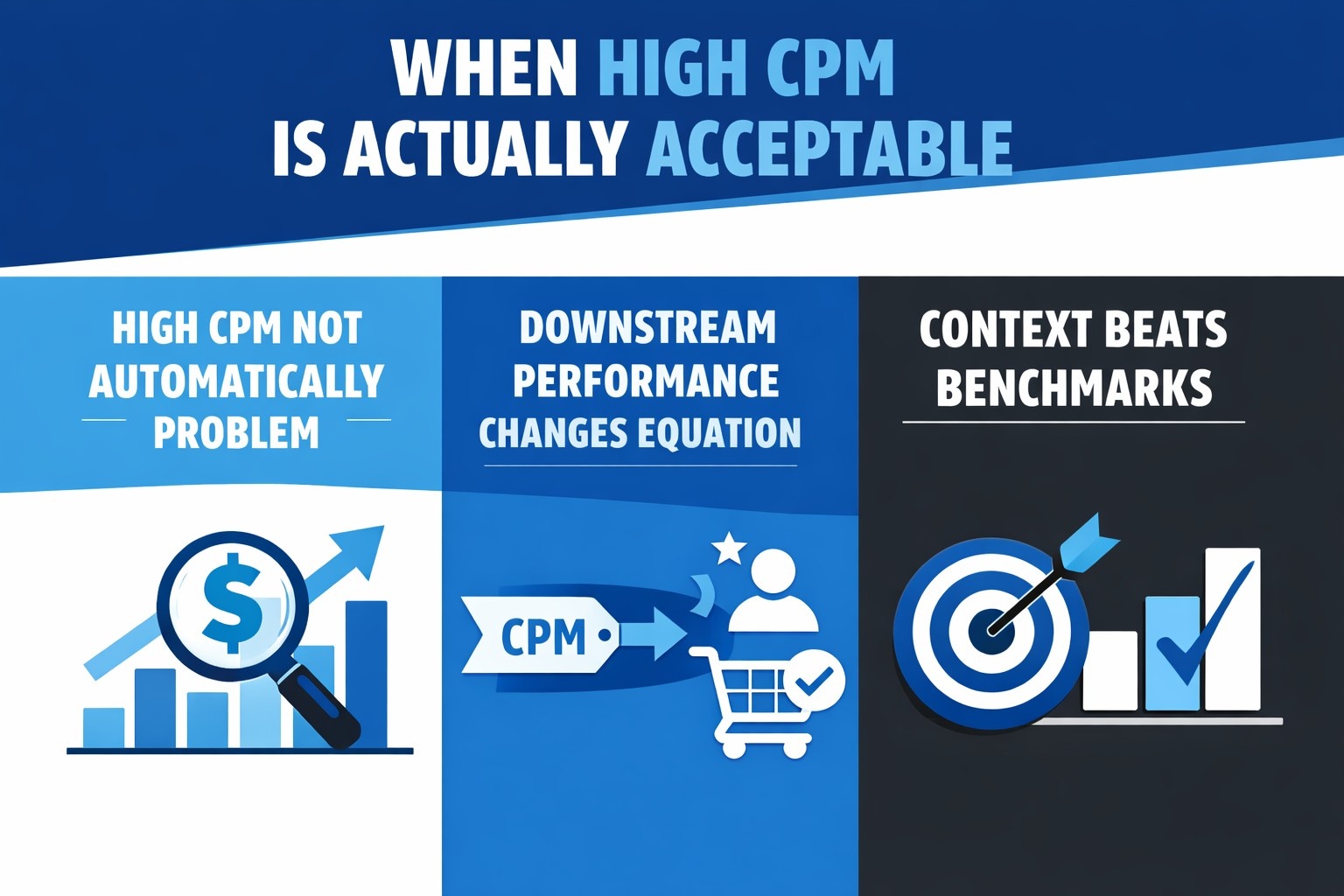 Not all high CPM is bad. In some cases, it is the expected cost of reaching valuable users in competitive environments. Industries with heavy competition, premium audiences, or high-value offers naturally operate at higher CPM levels. In those scenarios, focusing only on impression cost can be misleading.