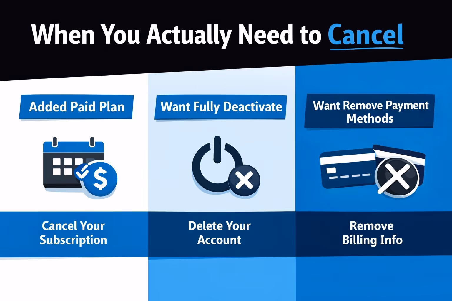 Open your billing or payment settings and check whether a credit card is attached to the account. If one exists and a paid plan was selected, charges can occur once the trial ends. Removing the card does not always cancel the plan, but it adds an extra layer of protection and helps prevent accidental billing.