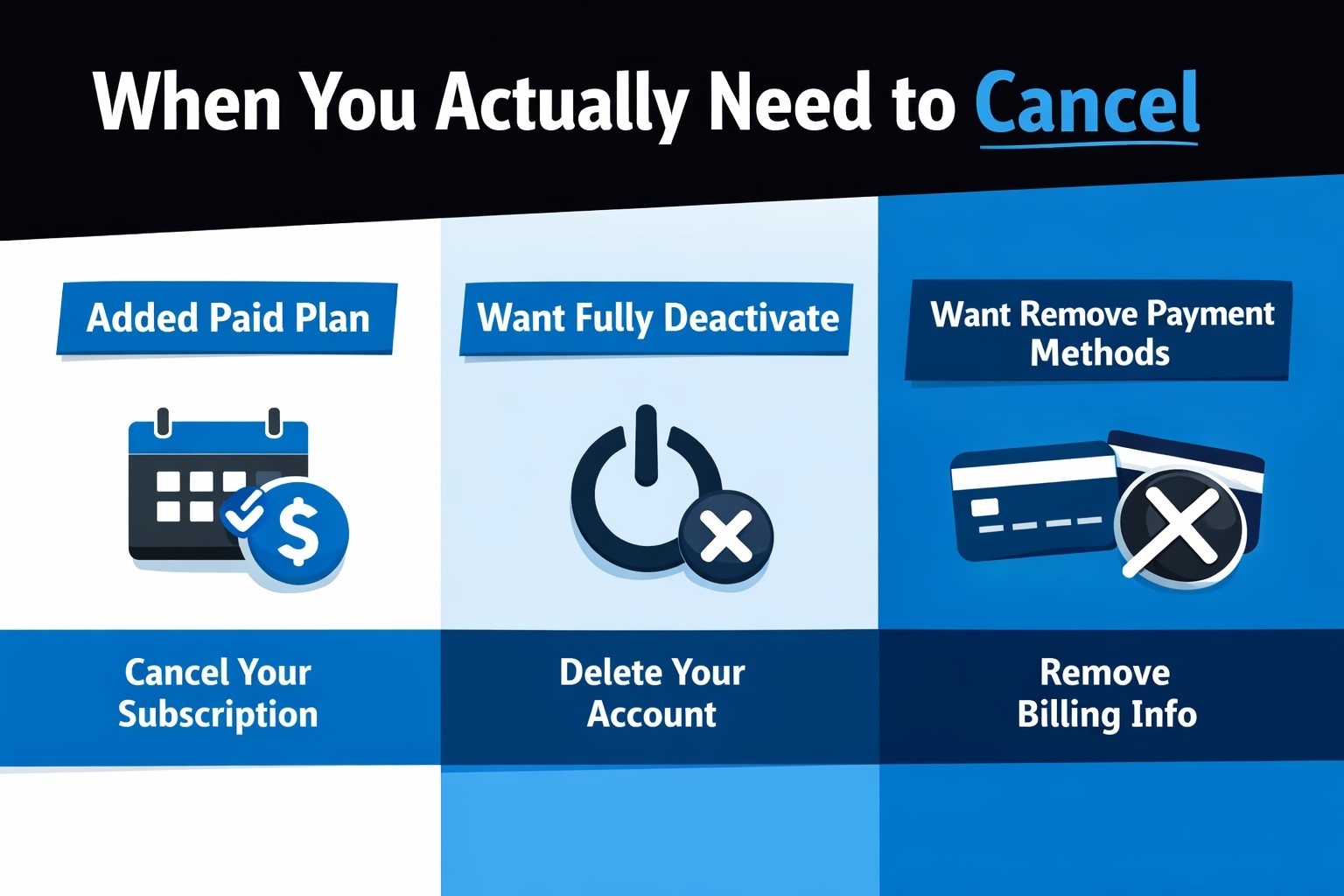 - You want to remove payment methods and close the account cleanly.
