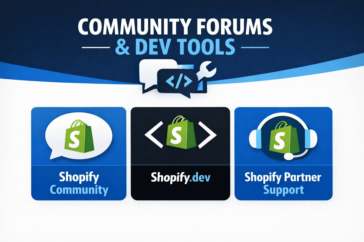 - Code-related questions? You’re likely headed to Shopify.dev or the forums.