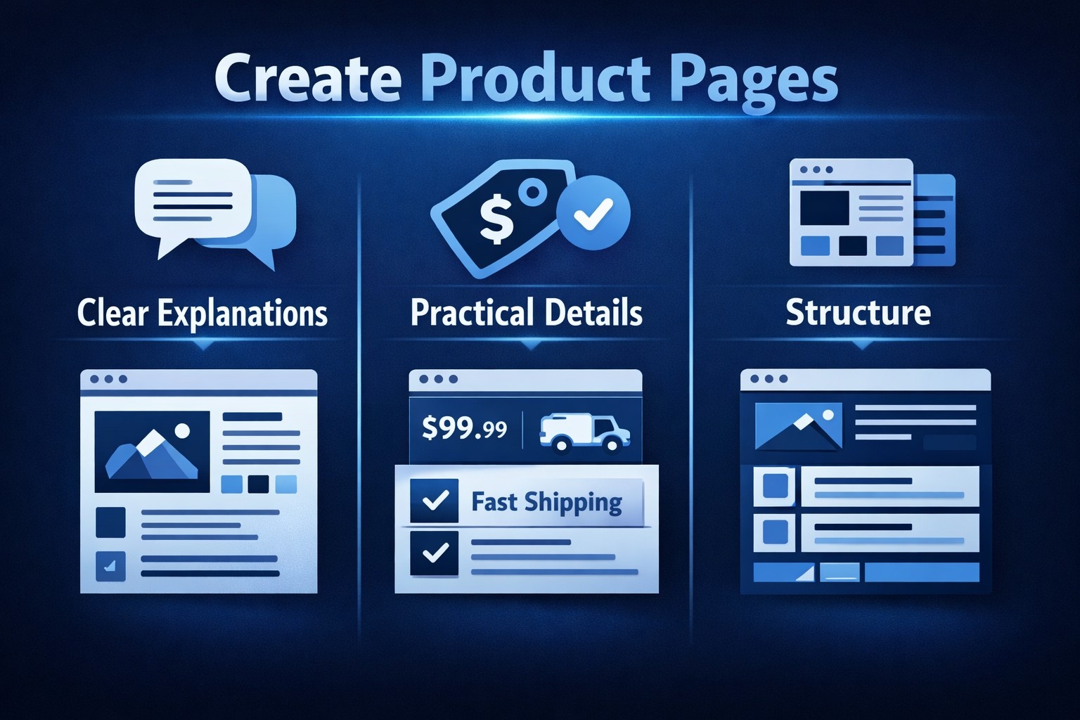 Strong product pages often include:
