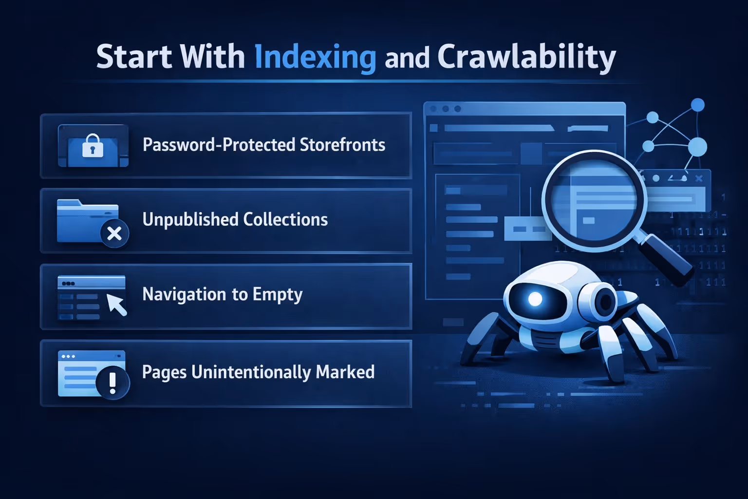 Before worrying about rankings, keywords, or content depth, you need to answer a simpler question: can search engines properly access your store?