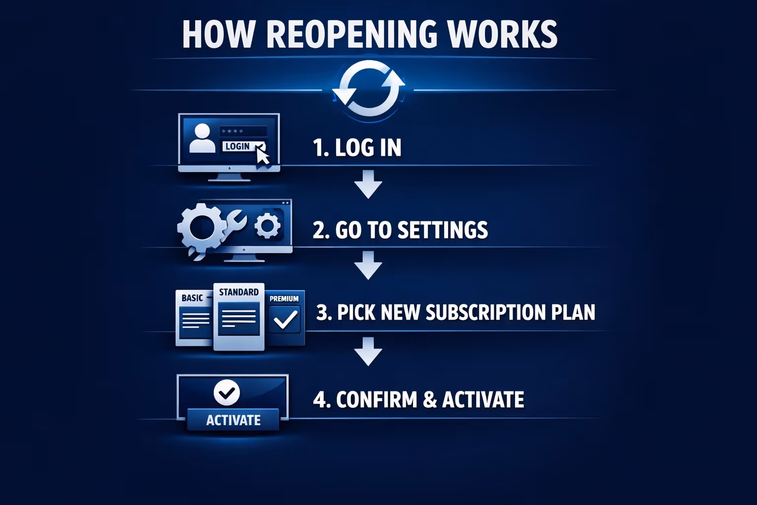 Unpausing is not instant by default. Shopify requires you to choose a new plan before checkout becomes active again. Your previous plan does not resume automatically.