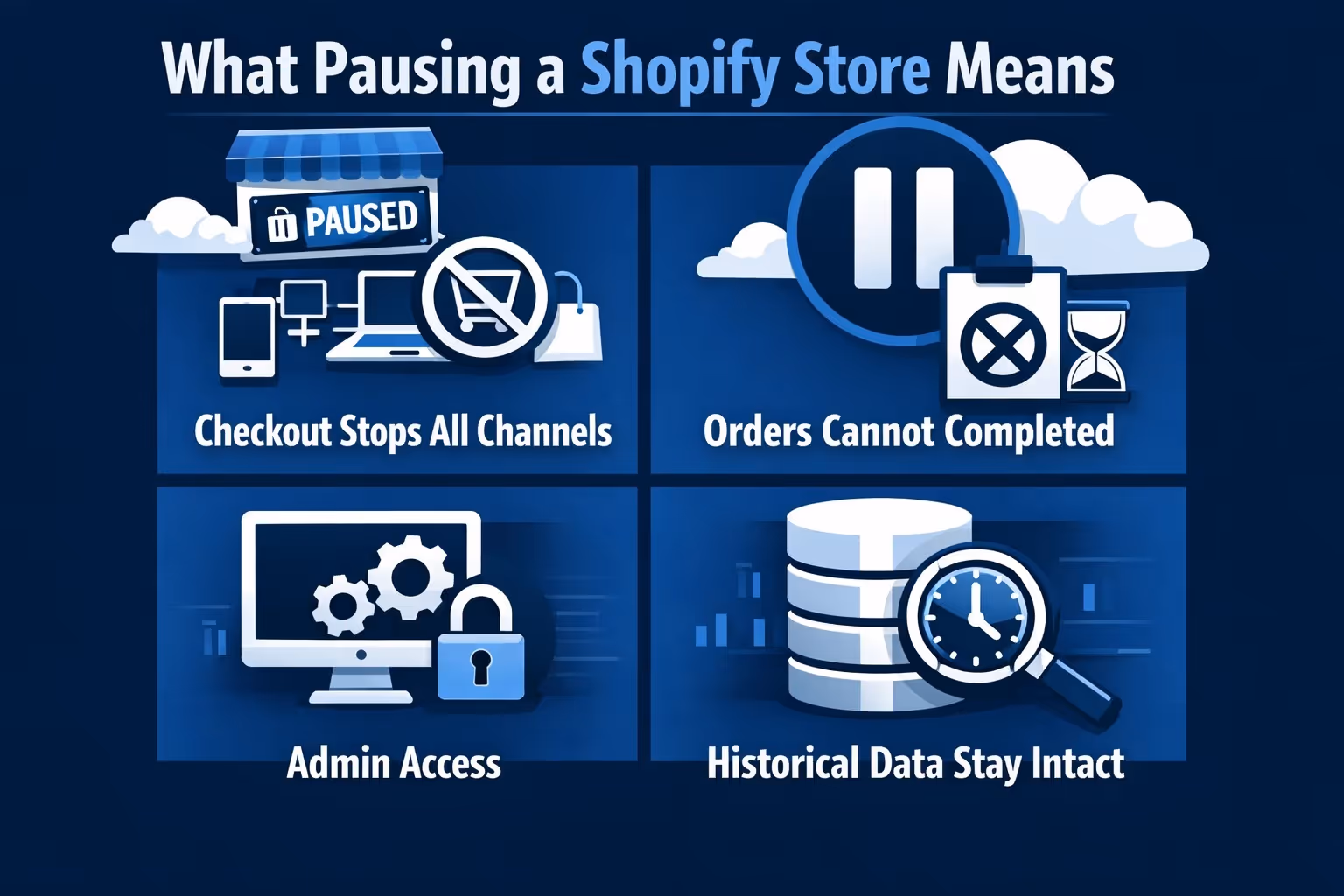 Pausing a Shopify store is not the same as closing it. You still keep access to your admin, your products, and your data, but customers cannot check out. This guide explains how pausing works, when it makes sense, and what to expect so you don’t accidentally lock yourself into something you didn’t plan for.