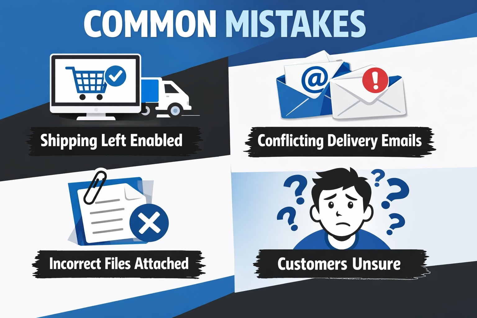 - Unclear or conflicting delivery emails. Customers rely on email to understand what happens after payment. When order confirmation messages and delivery emails do not align, buyers are left guessing where their product is or what they should do next.