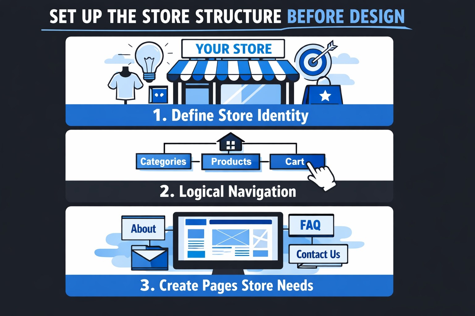 Before customizing anything, focus on the foundation. A solid structure makes the store easier to understand, easier to trust, and easier to improve later.