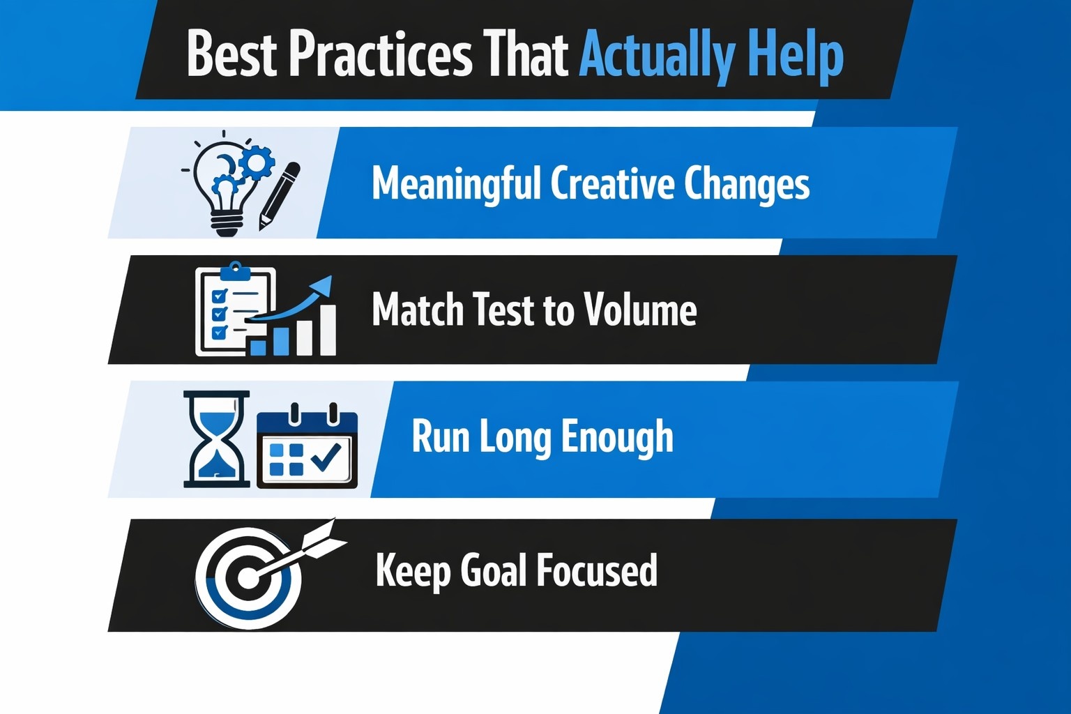 Once the test runs, study the results and keep the one that earns attention and performs. Then use what you’ve learned to guide the next set. It’s a simple loop: launch, learn, repeat, but with fewer dead ends.