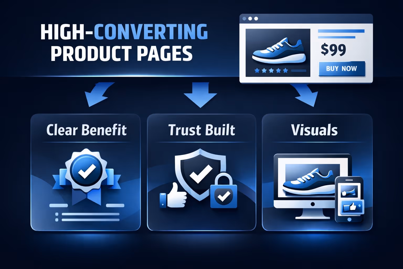 Strong product pages lead with the outcome, not the feature list. Visitors should understand the value of the product within seconds, without having to interpret technical details or compare multiple claims. One clear idea almost always performs better than several competing messages fighting for attention.
