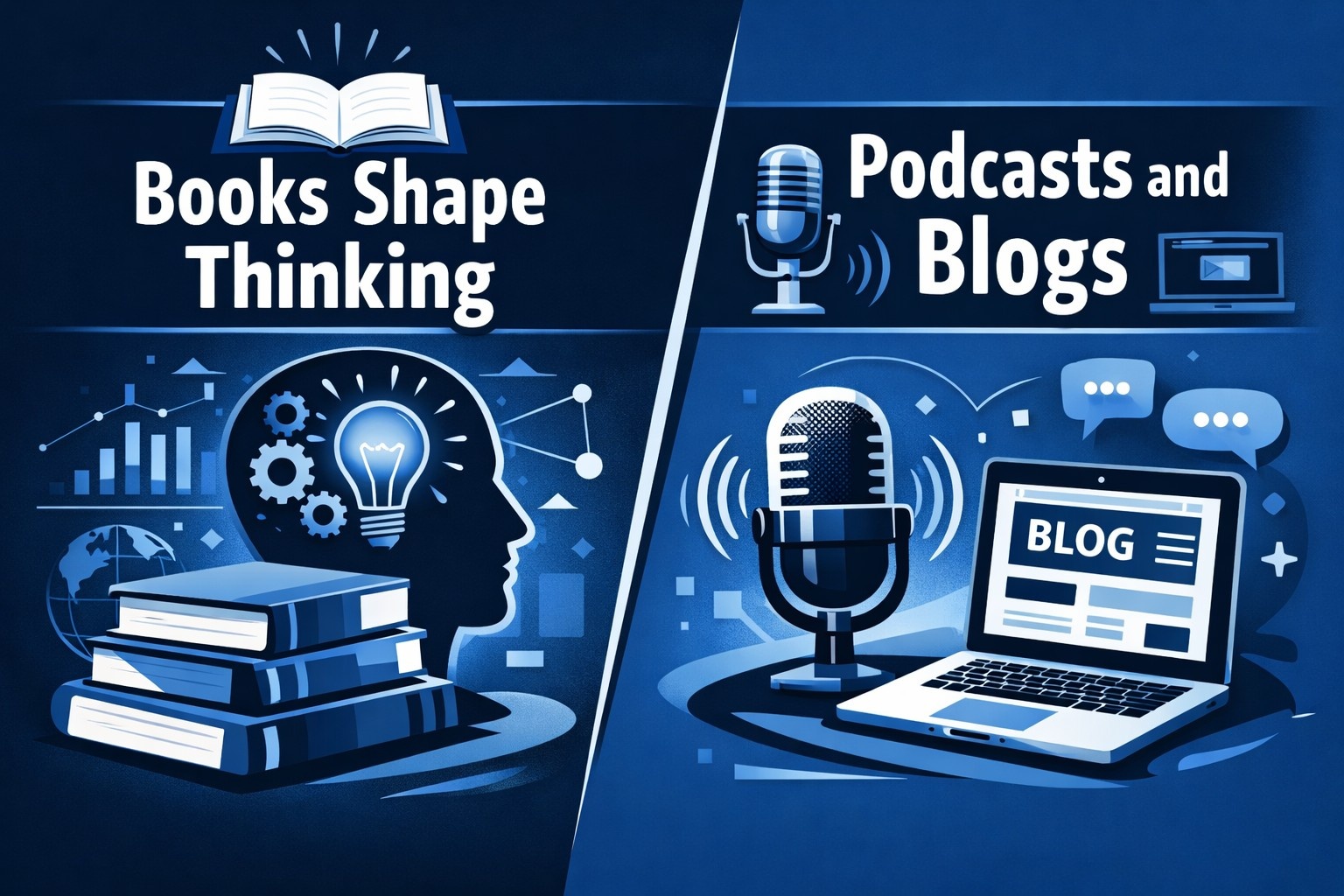 Books, podcasts, blogs, and industry voices add context Shopify cannot always provide.