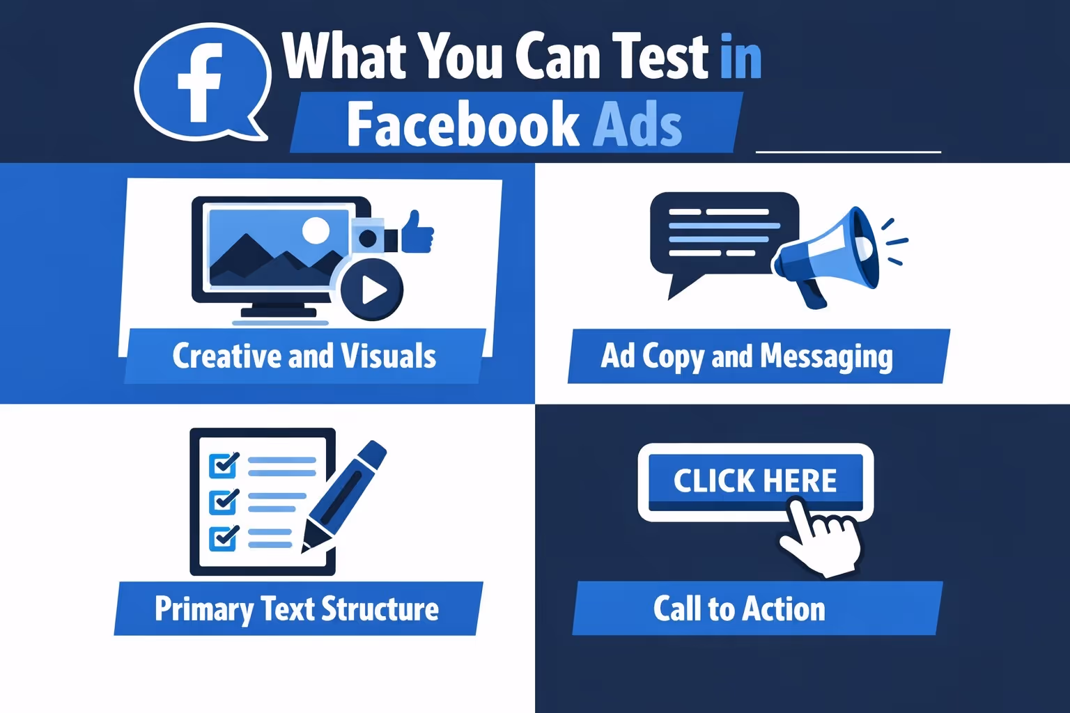 Facebook ads offer many elements that can be tested, but effective A/B testing requires focus. Not every possible variable should be tested at once, and the most reliable tests isolate a single element that directly influences user behavior.